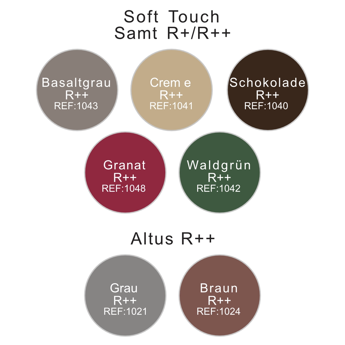 - Bezugsmaterial: Soft Touch Samt R++ / Altus R++ zur Auswahl